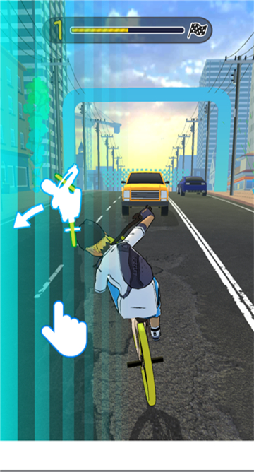 1、游戏画风充满了三维立体效果,无论是角色还是自行车,亦或是跑道,所有东西看起来都非常立体。