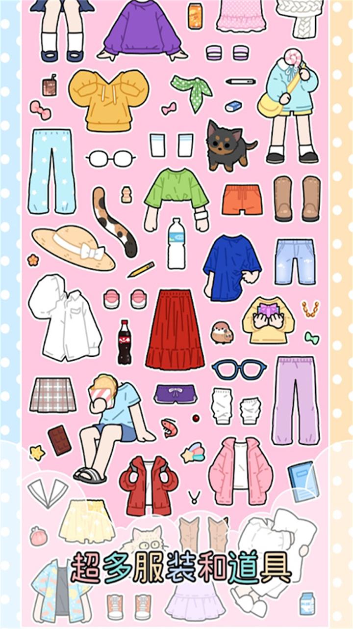2、丰富的游戏服装饰品等等,游戏设计了很多不同风格的服饰还有各种贴纸,玩家都可以使用,看看会有什么效果;