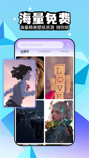 真正让你的手机壁纸与众不同的3d动态壁纸,会跟着手机转动而展现不同角度哦。