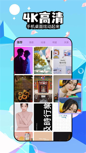 2、每天都会实时的更新高清大图,分类与推荐中就可以轻松找到自己喜欢的壁纸;