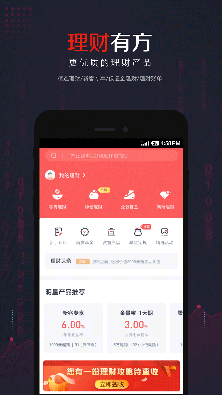 丰富多元化的理财品类,闲置资金照样理财,合理配置投资资源。