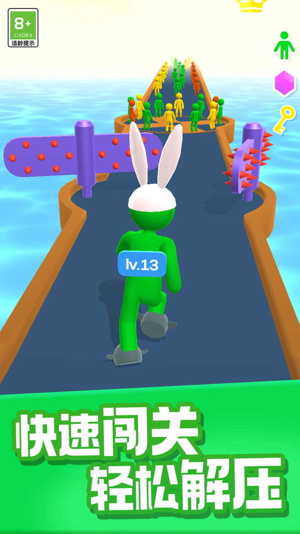 彩色人大战游戏以跑酷为核心玩法,结合了大量的动作元素和解谜元素。在游戏中,玩家需要控制角色在复杂的赛道上奔跑,躲避障碍物,收集道具,同时还需要利用角色的特殊技能来解开谜题,顺利过关。