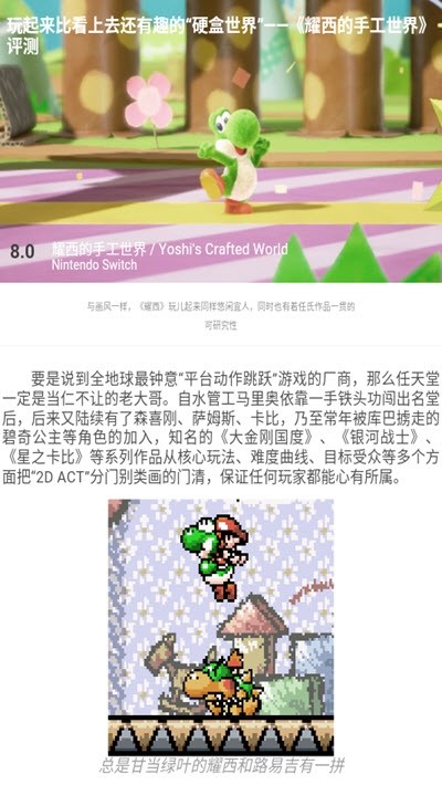 【耀游戏软件】集成了涉及到对《耀西的手工世界》的测评图文展示,