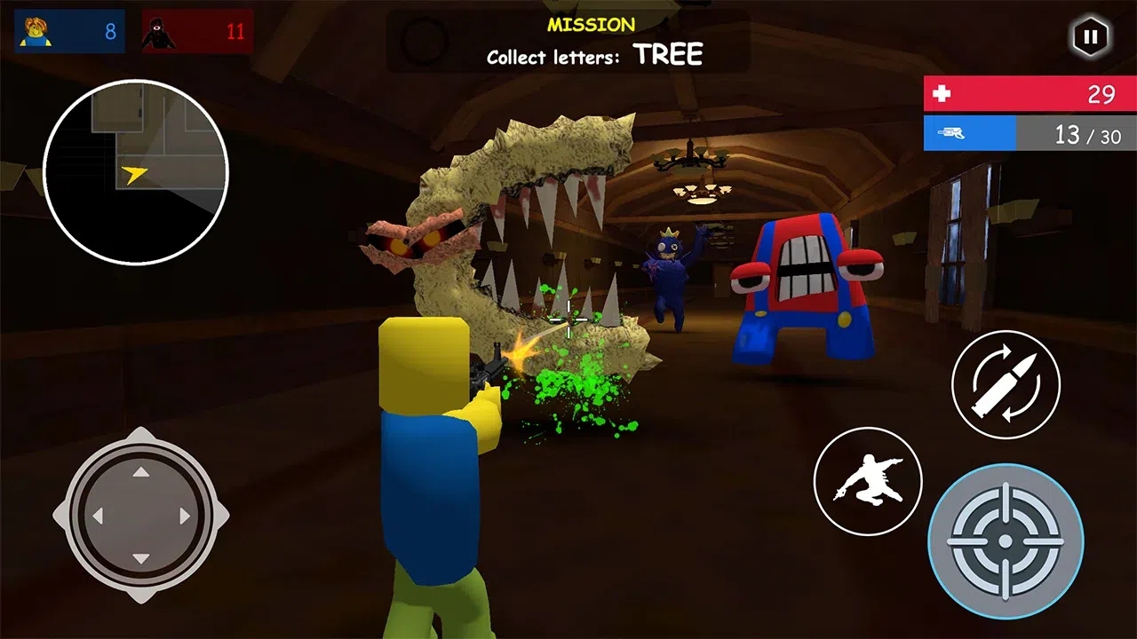 在字母怪物的世界中发起有趣而令人兴奋的挑战,扮演怪物或猎人以发起令人兴奋的枪战挑战。