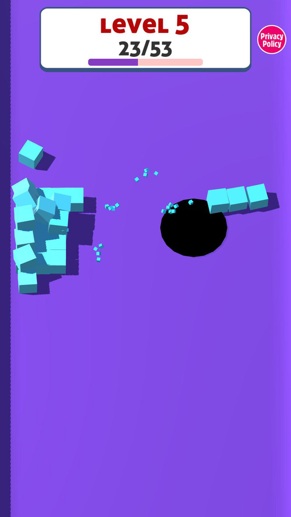 游戏的战斗时间短,适合打发闲置时间,,将黑洞拖动到颜色块旁,有策略的进行吞噬,用你的黑洞吃掉所有东西,移动你的手指控制洞吃掉所有方块!