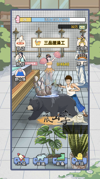 4. 玩家可以使用金币解锁新的搓澡技能、购买道具,提升角色的能力。