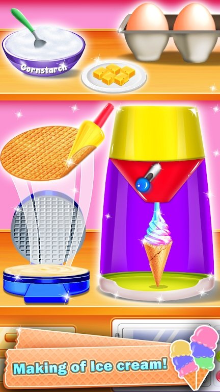4. 购买新设备:玩家可以使用金币购买新的生产设备,如冰激凌甜筒机、水果切割器等。