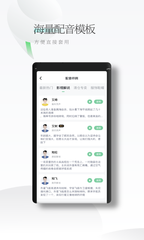 3. 易于操作:简洁直观的界面设计和操作流程,让用户轻松上手,快速完成配音任务。