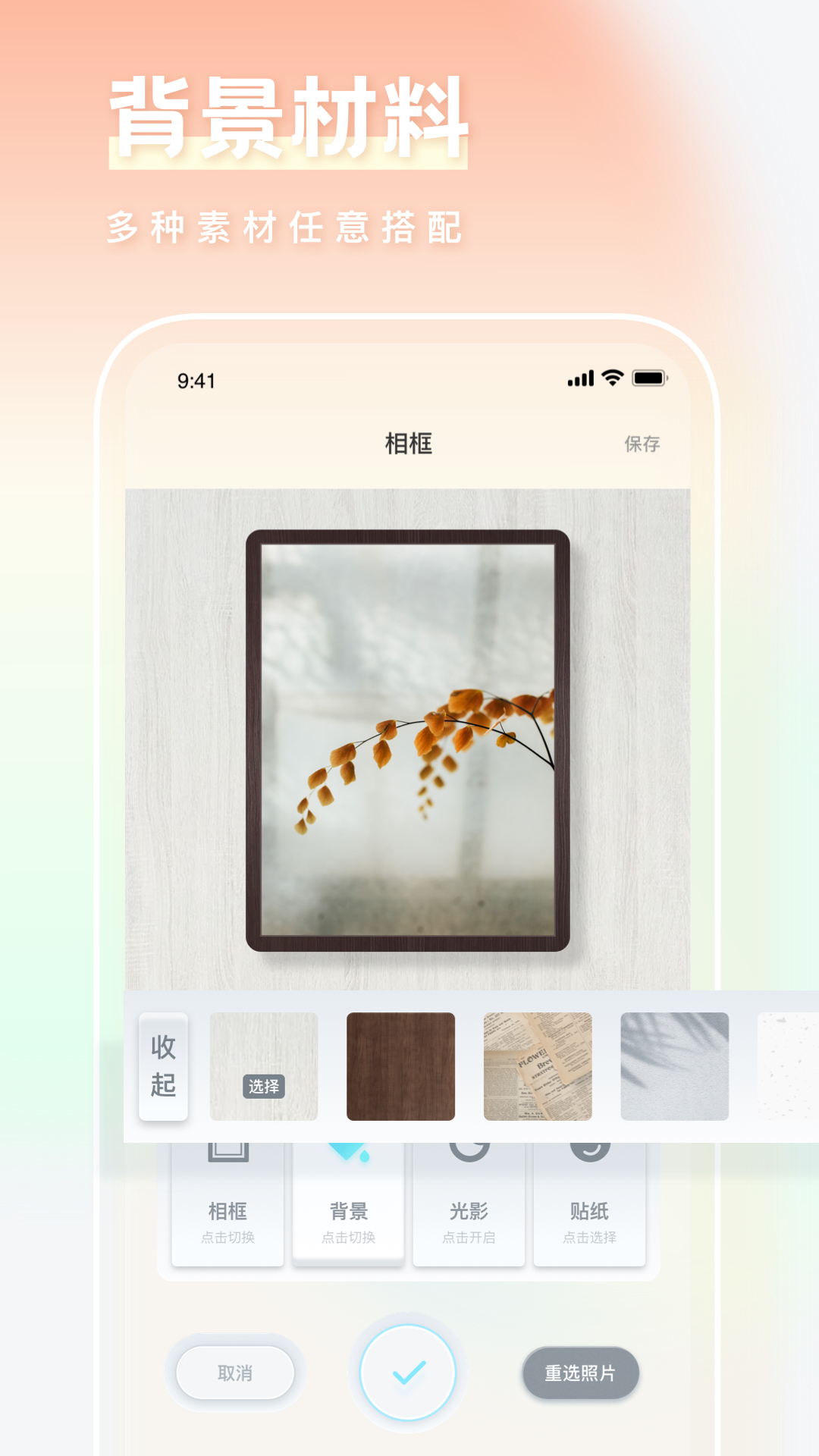 《一副相框装裱大师》app有着多样化的相框样式,提供了多种风格的相框,包括现代、古典、简约、浪漫等,让用户能够自由发挥创意,制作出独特的相框作品,满足不同用户的需求。