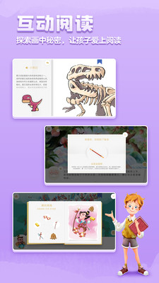 4、看绘本,涨知识每个绘本中都隐藏多种互动知识点,让孩子在阅读中收获科普人文、生活常识等新知识5、答问题,更专注每个绘本都配套趣味问答、多维巩固,提高孩子的理解力