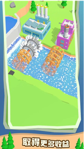 水磨发电是一款特别好玩的休闲模拟游戏,玩家们能够在这款游戏中进行水力发电,让你可以获得更多的收益,游戏的场景中包括了非常多的发电机,大家能够在这里建立水磨进行发电,整体的操作方式非常的简单,大家能够在这里进行手指点击,可以征服多种多样的任务关卡。