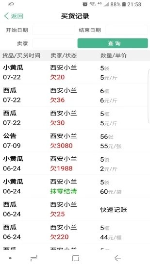 3、提供查询买货记录的方式更加的自由,能够快速的查询到对应日期的内容;