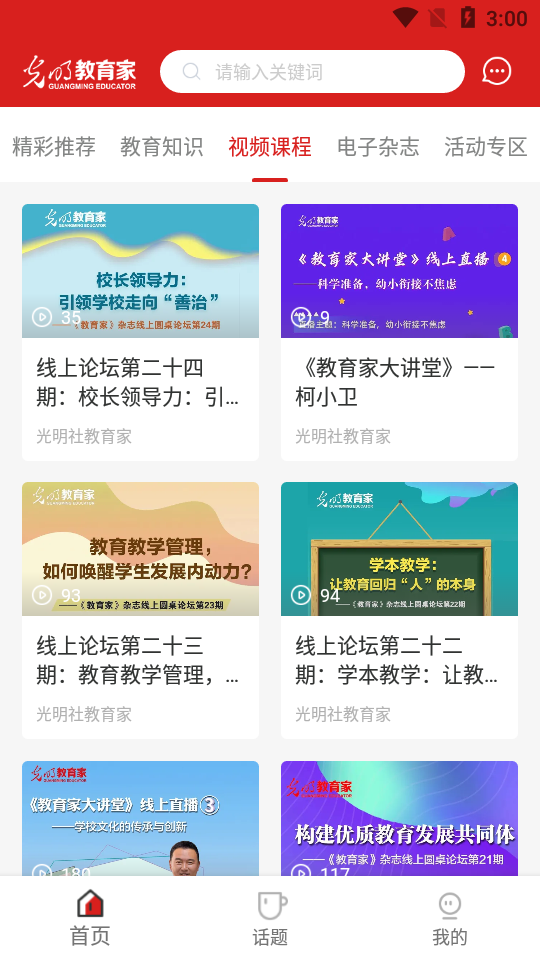 光明教育家app是家校、社会链接桥梁,致力于传播有力量的思想,助推教育更美好。软件为用户提供了非常丰富的视频课程,有很多电子杂志等教育内容,大家随时都能在线阅读学习。