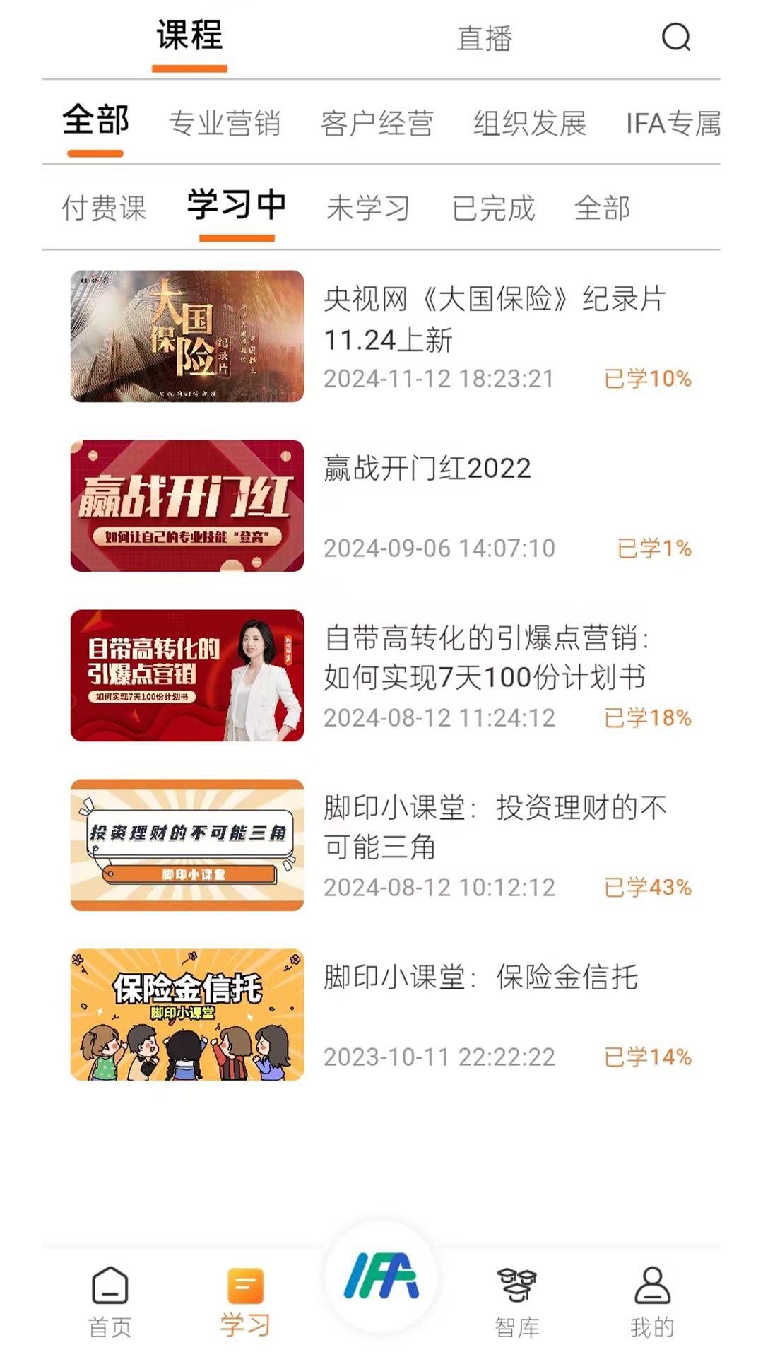 脚印云课专注于为保险从业者和财富管理顾问提供系统化、实战型的在线培训服务,平台课程涵盖顾问式销售、客户经营、组织发展、职业规划等多个方向,帮助学员提升专业能力和市场竞争力,还提供直播回放、专属工具、题库练习等功能,支持IFA会员专属权益。