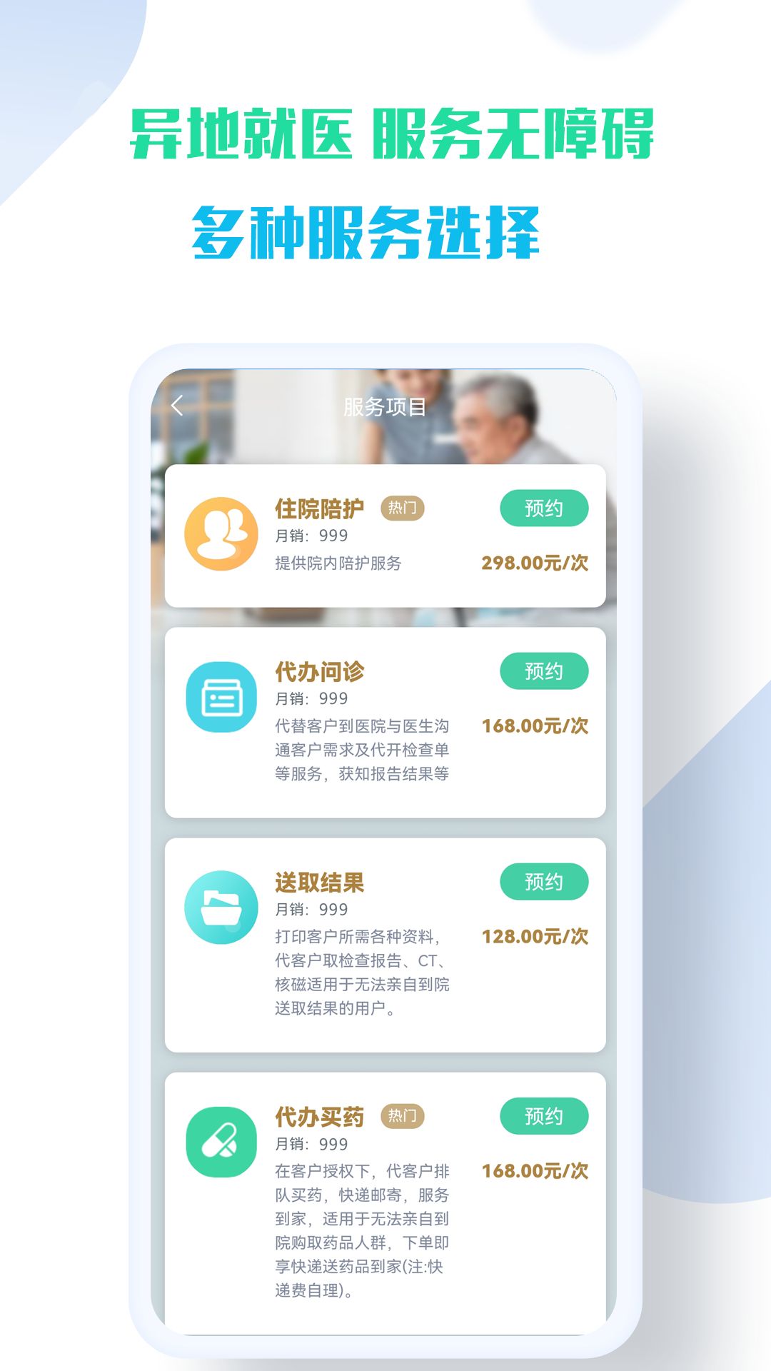 1、老人:如果您工作繁忙,担心家中老人看病无人陪同,陪护人员帮您照顾老人,放心就医。