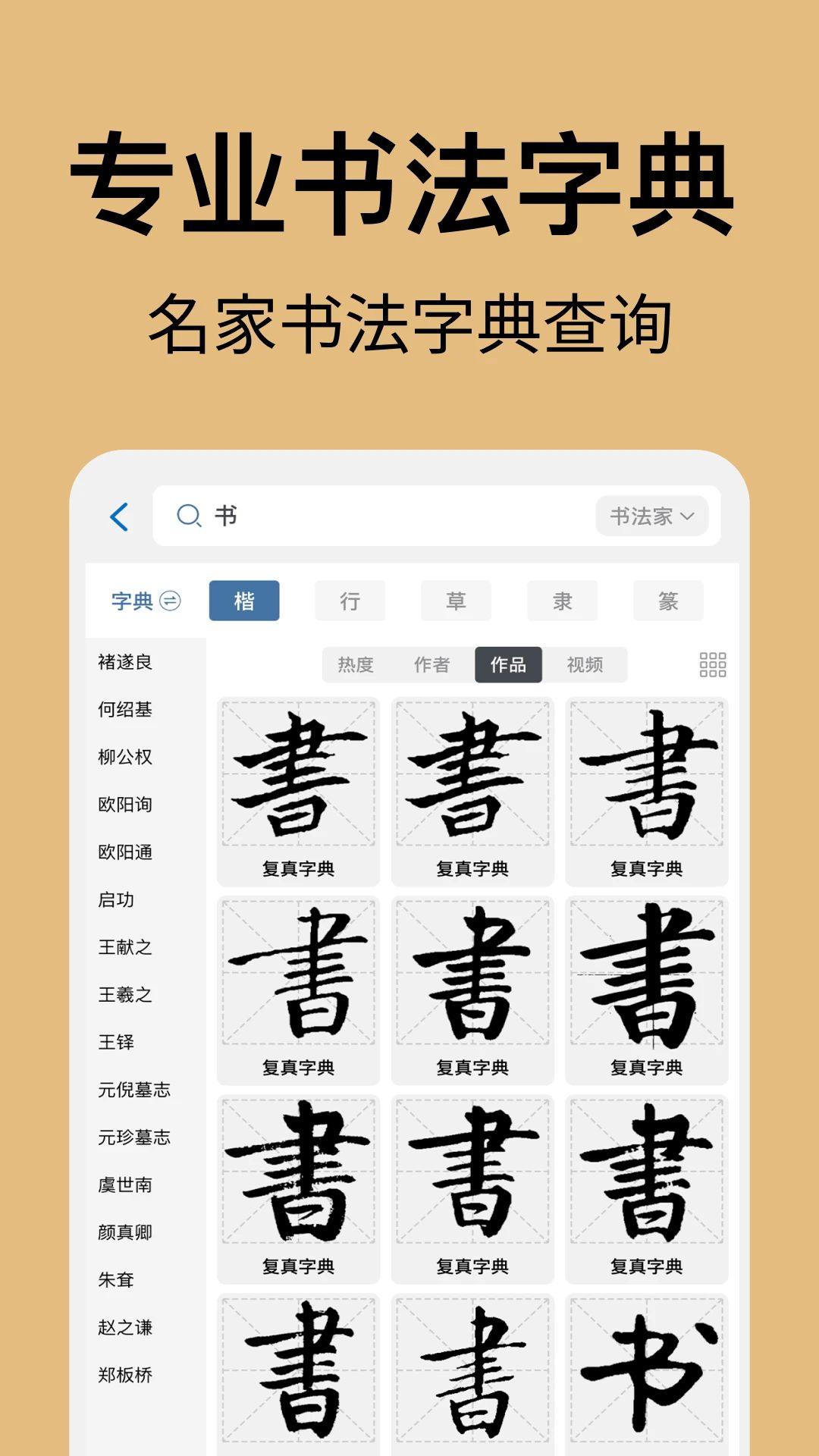 2、按书体、朝代、书法家等多维方式分类浏览。