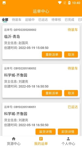 1. 取消订单,选择待装车的订单可以在自己不能承运的情况下取消。