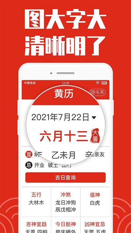 日历大字版是一款专为老年人或视力不佳的用户设计的日历软件。它提供了大字体、简洁直观的界面,方便用户查看每日的日期、农历、黄历等信息。同时,该软件还支持天气预报、节日提醒、记事本等功能,帮助用户更好地规划日常生活。