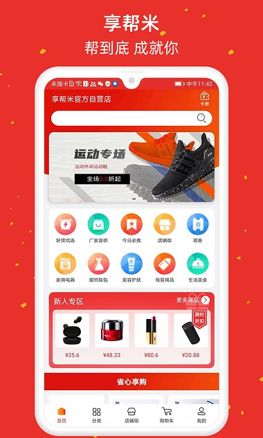 享帮米app是一款商品类型非常丰富多样,同时价格也比较实惠的购物商城软件,为您带来海量精美线上商品选购福利。这里种类齐全,基本上能满足您的日常消费需求,并且还有专属优惠券可以领取,另外新用户注册还有限时优惠活动,让您在轻松购物的同时还能享受优惠。