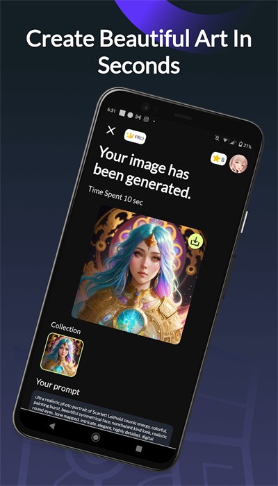 是一款革命性的应用程序,可让您将简单的提示转化为令人惊叹的艺术作品,用户们可以免费浏览各种艺术作品,收集绘画灵感,同时还能够通过关键词描述,将想象一键变成现实,快速生成各种艺术作品