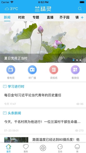 兰精灵APP是兰溪市融媒体中心,在移动互联网背景下,集成原先报纸、电视、广播、网站的功能外,全新打造的体现集聚功能的移动综合客户端APP。一方面,通过深度融合、采编流程再造,建立随采、随编、随审、随发机制,打造有舆论引导力、思想引领力、文化传承力的主流舆论的新媒体阵地;另一方面,通过开展媒体+党务、媒体+政务、媒体+服务、媒体+文创等运行模式,打通线上线下开展社区交流,实现新闻宣传向公共服务领域拓展,面向社区、村镇提供精准化的生活资讯,打造综合服务平台和社区信息枢纽。