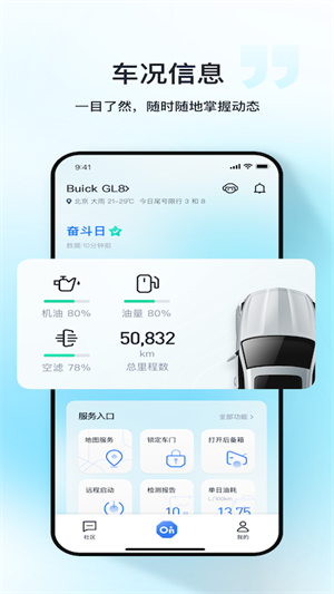 1、车况:实时查看车况,了解爱车最新信息,确保行驶安全。