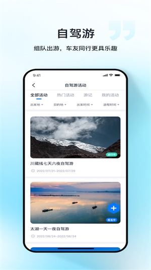 4、进入生活版块,查看各种自驾游活动内容,快速了解和其他车主进行交流,讨论各种热门话题