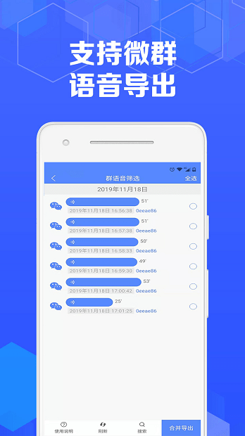 3. 语音合并:用户可以自定义选择想要合并的语音记录,通过一键合并功能,将多条语音消息合并成一条连贯的音频文件。