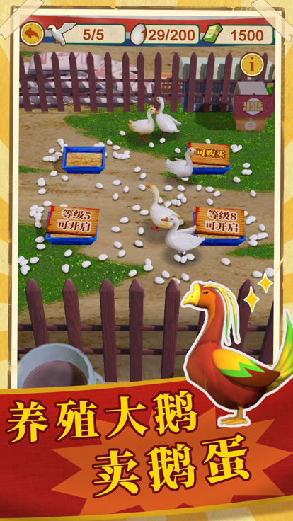 2.多种不同的养成方式,为你的鹅场不断地进行升级,扩建获得更大的面积,收获新的大鹅。