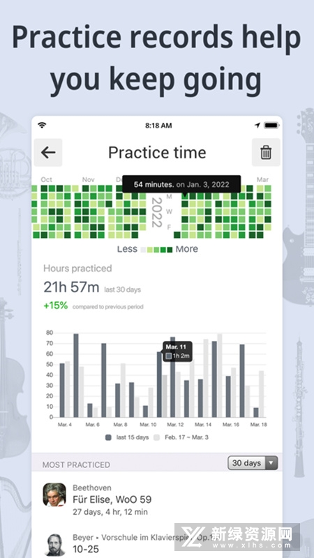 4、录制您的演奏:够通过我们的应用程序上传您自己的乐谱,您可以在观看上传或提供的乐谱时录制和练习演奏。