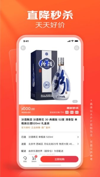 1. 29分钟送达,慢必赔:在京东酒世界下单,附近门店即刻配送,29分钟内极速送达,慢必赔(门店配货范围内,超出极速达订单配送时效,可按规则赔付)。