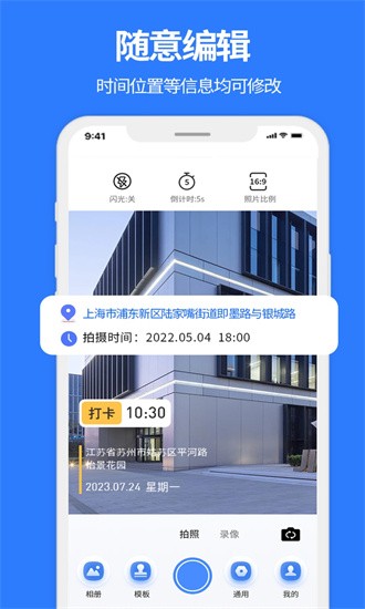 实况水印相机是款实用的水印相机,它可以帮助用户进行打卡拍照,同时还能加上时间地点等水印,这里有丰富的水印模板,你可以根据需求选择使用。不管是打卡还是记录等它都适用,你还能在线编辑图片。