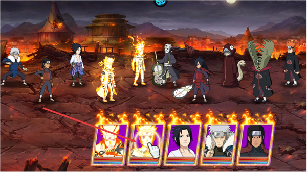1、选择下方忍者卡牌如鸣人,将其部署到战场中,准备参与战斗。