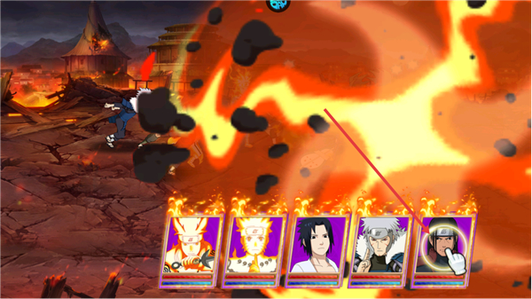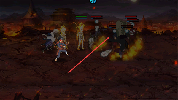 2、操控已部署的忍者如鸣人,释放技能攻击敌方目标,推进战斗。
