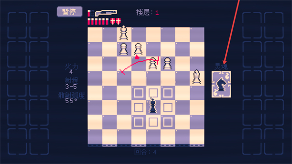 3、卡牌随机升级:闯关过程中可随机获取各类卡牌,既能强化自身国王属性或霰弹枪性能,也可能提升敌方棋子难度,随机元素增加策略深度与可玩性。