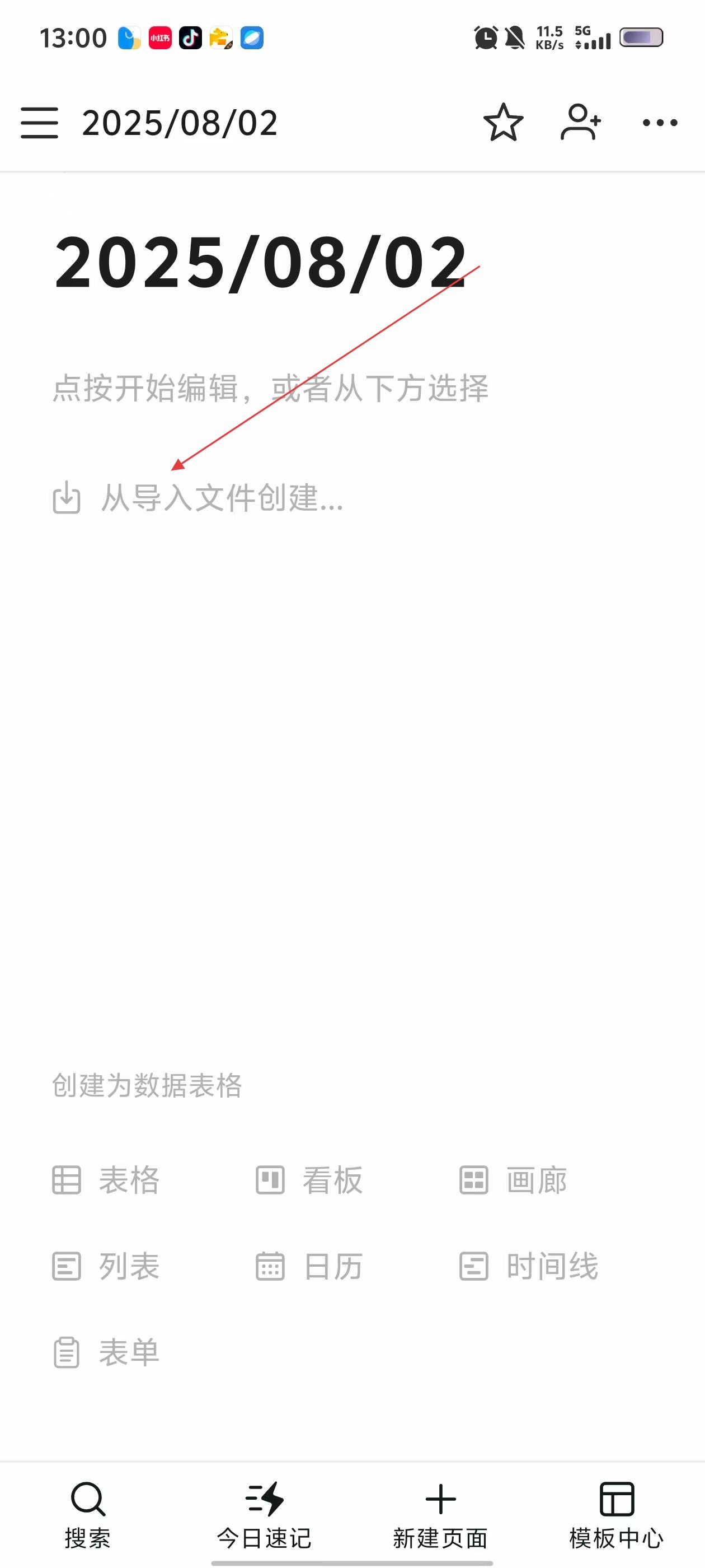 4、导入后回到日期页,可编辑内容或用下方功能创建内容。