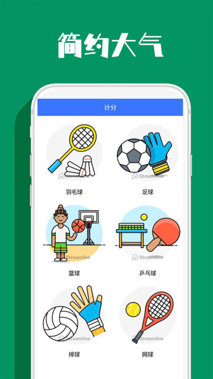 这是一个可以记录各种比赛的计分器工具,软件中提供各种体育、娱乐比赛项目,篮球、足球、乒乓球、羽毛球、网球、台球、棒球、排球等等,在打比赛的时候可以实时记分,结束比赛后可以随时查看记录的分数,是一个非常实用的软件。