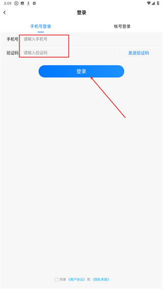 3、在登录界面中,选择手机号登录选项,进入手机号登录的输入页面。