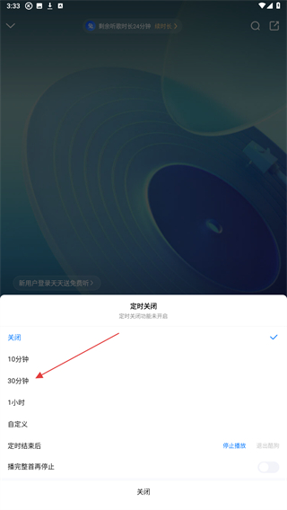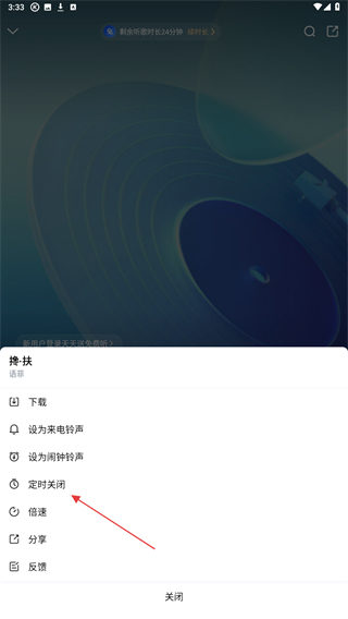 3、在下方弹出的菜单栏中,点击定时关闭的按钮。