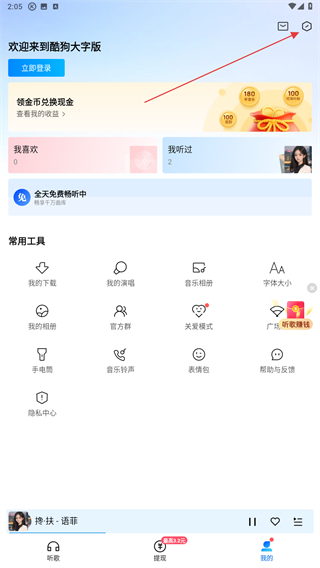 3.各种怀旧金曲全都有,除了听歌看视频之外还可以通过酷狗音乐大字版来唱歌,让你心情愉悦的同时还可以赚钱。