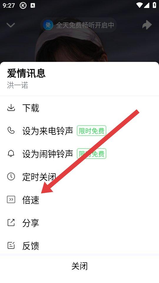 2、点击需要调倍速的歌曲,在弹出的功能菜单中找到并点击倍速的选项。