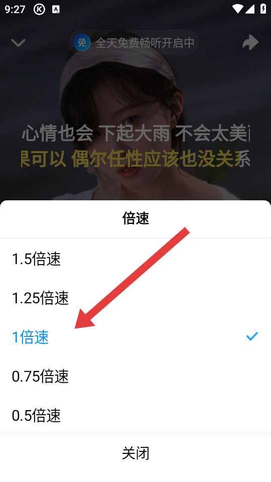 3、进入倍速选择的界面后,可以选择合适的倍速如1倍速等,选择后歌曲将以所选倍速播放。