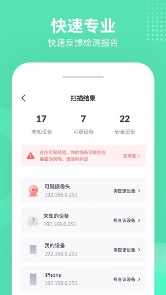 1. 一键检测:简化操作流程,用户可轻松进行针孔摄像头检测。
