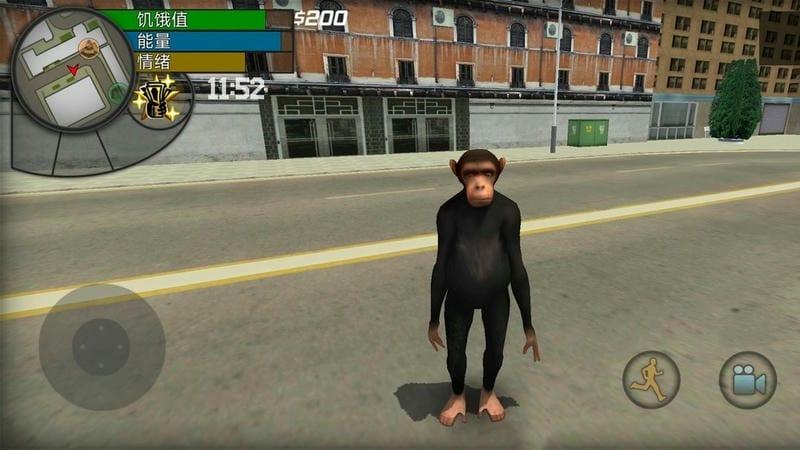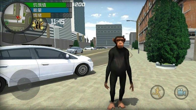 2、滑动左侧虚拟按键操控公狒狒移动,在城市中自由探索,靠近车辆时可尝试上车操作。