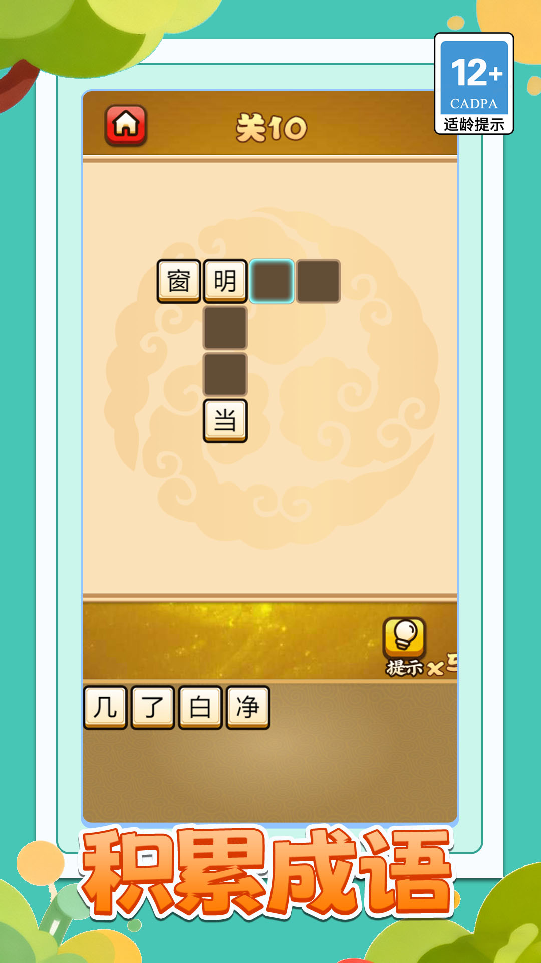 3、随机触发的趣味彩蛋关卡,挑战特殊成语谜题,通关赢取稀有称号碎片,让闯关过程充满惊喜与期待。