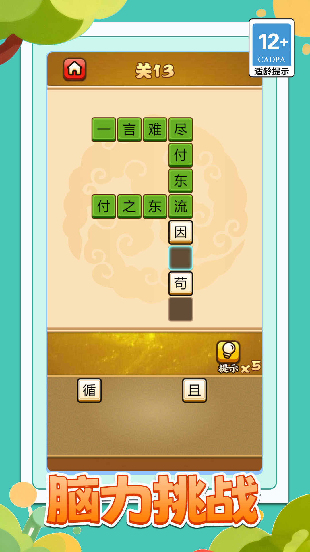 2、丰富的关卡主题,从历史典故到日常俗语,不同主题解锁不同趣味,让你闯关不枯燥,越玩越新鲜。