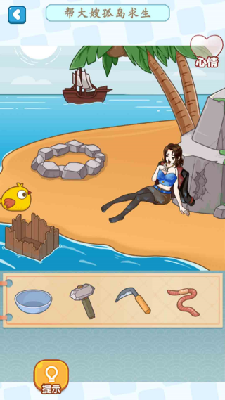 4、进入孤岛求生关卡,玩家需要利用孤岛的工具,帮助图中的女孩在孤岛上生存下去。
