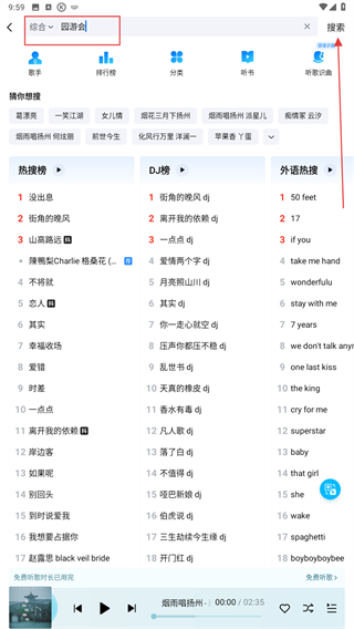 2、在输入框内输入歌曲名称后,再点击搜索的按钮。