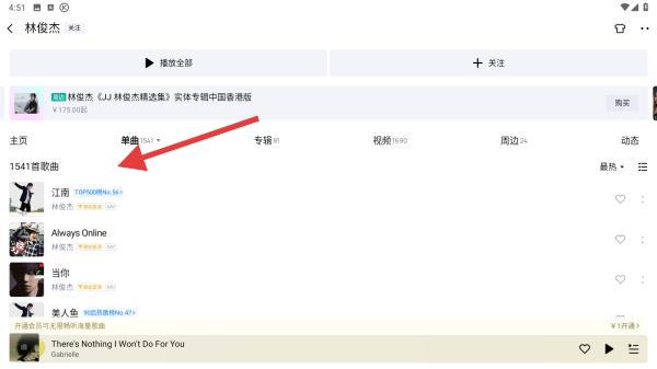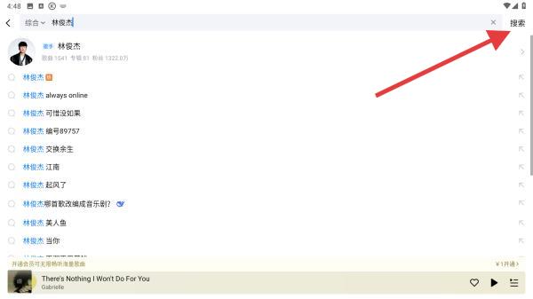 2、在搜索框输入目标歌手名字,如林俊杰,点击键盘搜索或界面右侧的搜索按钮。