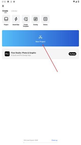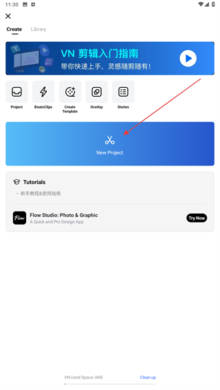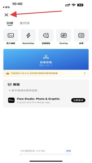1、打开VN视频剪辑APP,进入到剪辑的页面内,点击×的按钮回到主页内。